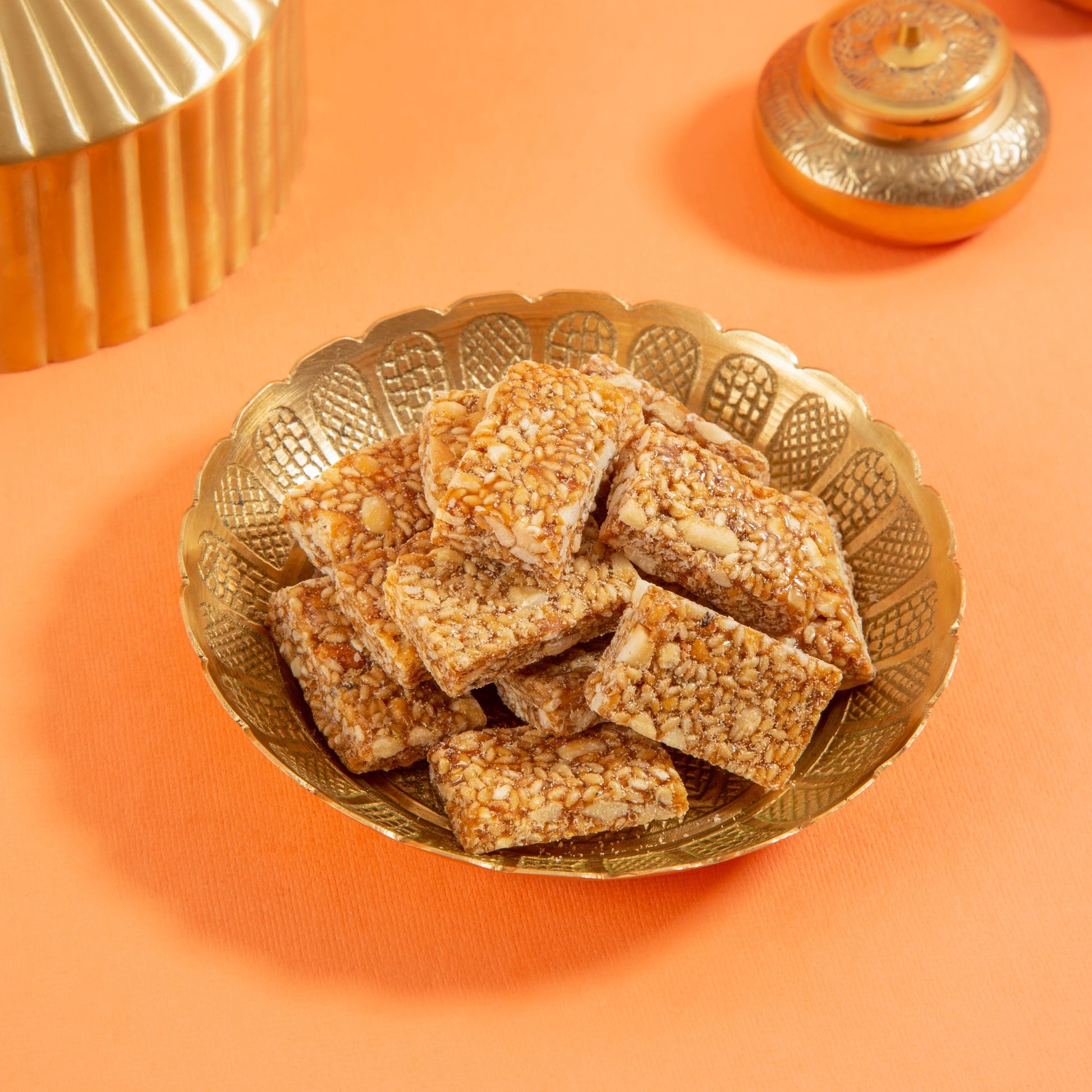 A wholesome and nutritious indian sweet made from fresh white sesame,nuts and jaggery that is perfect for satisfying your sweet cravings anytime